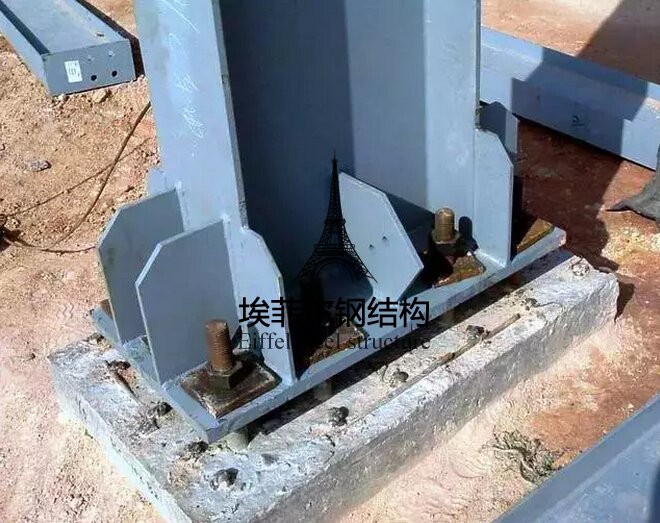 鋼柱宜采用一點(diǎn)直吊綁扎法起吊,就位時(shí)對(duì)準(zhǔn)地腳螺栓緩慢下落,對(duì)位后擰上螺帽將柱臨時(shí)固定,校正其平面位置和垂直度;校正后終擰螺帽,用墊板與柱底板焊牢,然后柱底灌漿固定 。