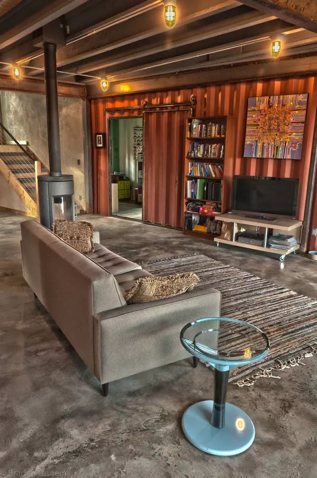 箱子內(nèi)部墻面不用多家裝飾,自然地集裝箱內(nèi)殼就是最好的點(diǎn)綴。
