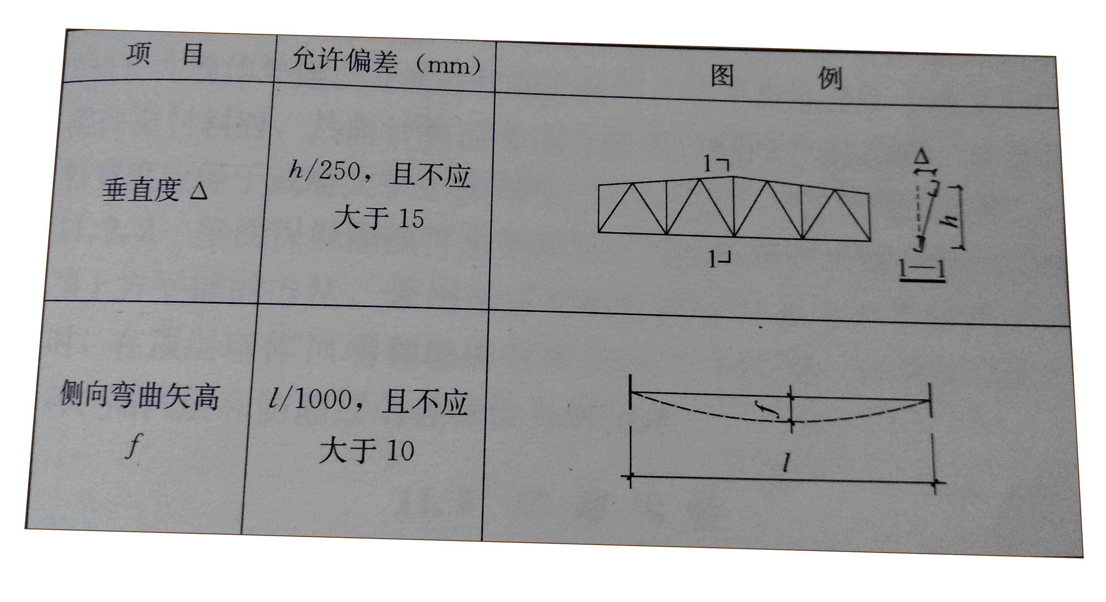 表5屋架、梁的垂直度和側(cè)向彎曲矢高允許偏差