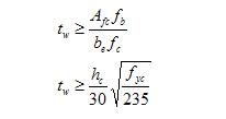 2、腹板的厚度tw應(yīng)滿足下式要求: