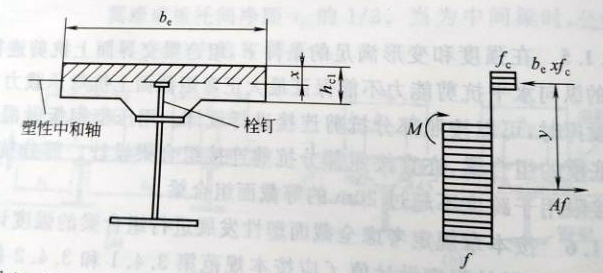 圖11.2.1-1塑性中和軸在混凝土翼板內(nèi)時的組合梁截面及應力圖形