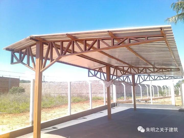 十一、《生活系列11-車棚》 用專業(yè)的眼光傳播價(jià)值。 中間的立柱為龍骨合抱柱,一般用于K房的立柱 組合立柱,配四個(gè)抗拔連接件,懸挑桁架為C+C背靠背模式 這個(gè)桁架更有意思 三根龍骨組合,中間做造型,頗有藝術(shù)感。