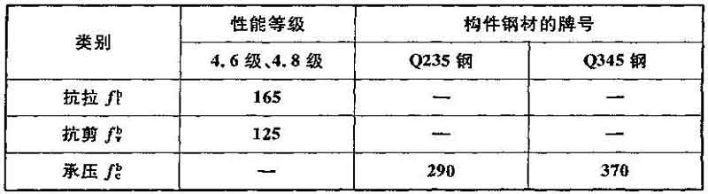 表4.2.5 C級普通螺栓連接的強度設(shè)計值(N/mm2)