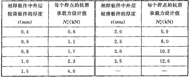 表4.2.6 電阻點焊的抗剪承載力設(shè)計值