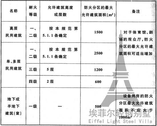 表5.3.1 不同耐火等級建筑的允許建筑高度或?qū)訑?shù)、防火分區(qū)最大允許建筑面積