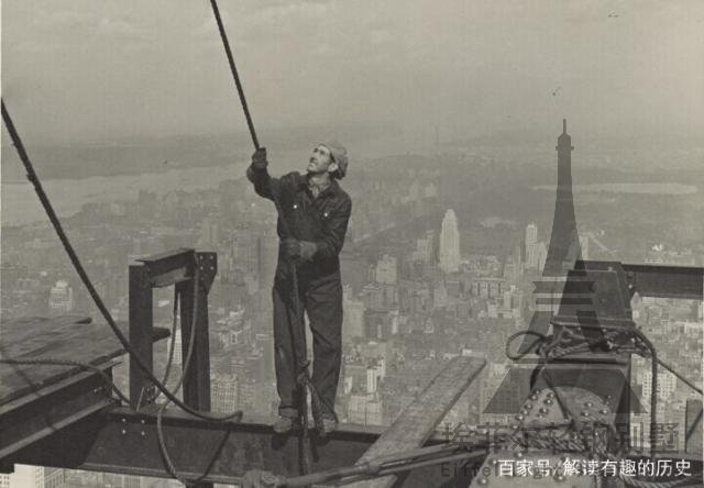 【工人正在高空作業(yè)】紐約帝國大廈,位于曼哈頓第五大道350號(hào)、西33街與西34街之間,是紐約永久性地標(biāo)建筑之一,在世界貿(mào)易中心興建之前,一直是紐約市最高的建筑,并且在很長(zhǎng)一段時(shí)間內(nèi)也是全球最高的建筑。帝國大廈始建于1929年3月17日,竣工于1931年4月11日,短短400多天就完成了修建。(這是一組反映帝國大廈修建過程的照片,建筑工人們?cè)诟呖兆鳂I(yè)完全無任何防護(hù),讓人看得戰(zhàn)戰(zhàn)兢兢,后背發(fā)涼。)
