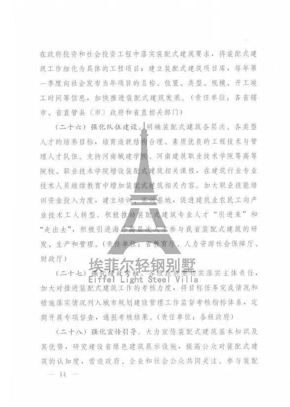 (1)到2020年年底,全省裝配式建筑占新建建筑面積的比例達(dá)到20%,政府主導(dǎo)的項(xiàng)目達(dá)到50%;其中鄭州市新建建筑面積的比例要達(dá)到30%,政府主導(dǎo)項(xiàng)目要占60%以上。