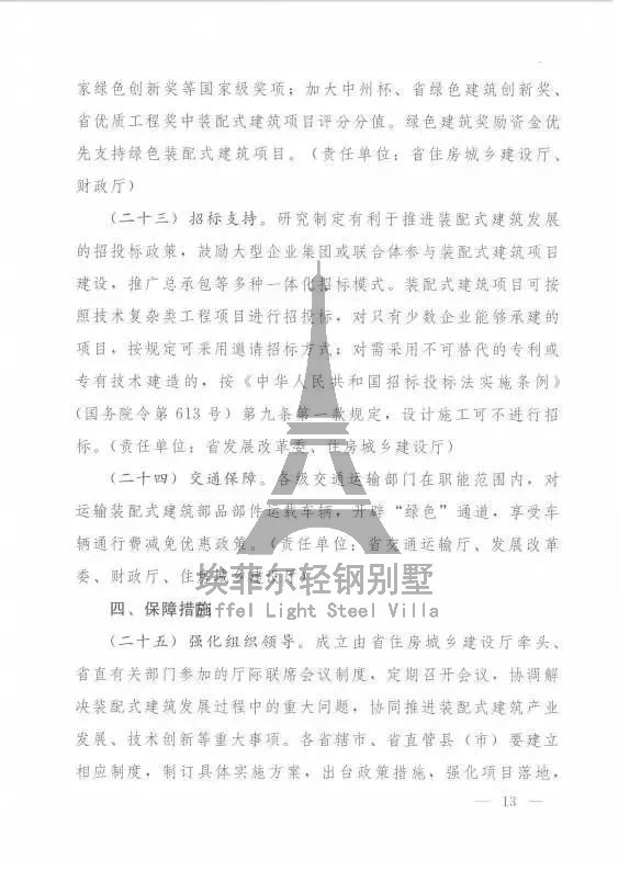 4、綜合施策,協(xié)同發(fā)展;綜合運(yùn)用土地、價(jià)格、財(cái)稅、金融等手段促進(jìn)裝配式建筑發(fā)展。